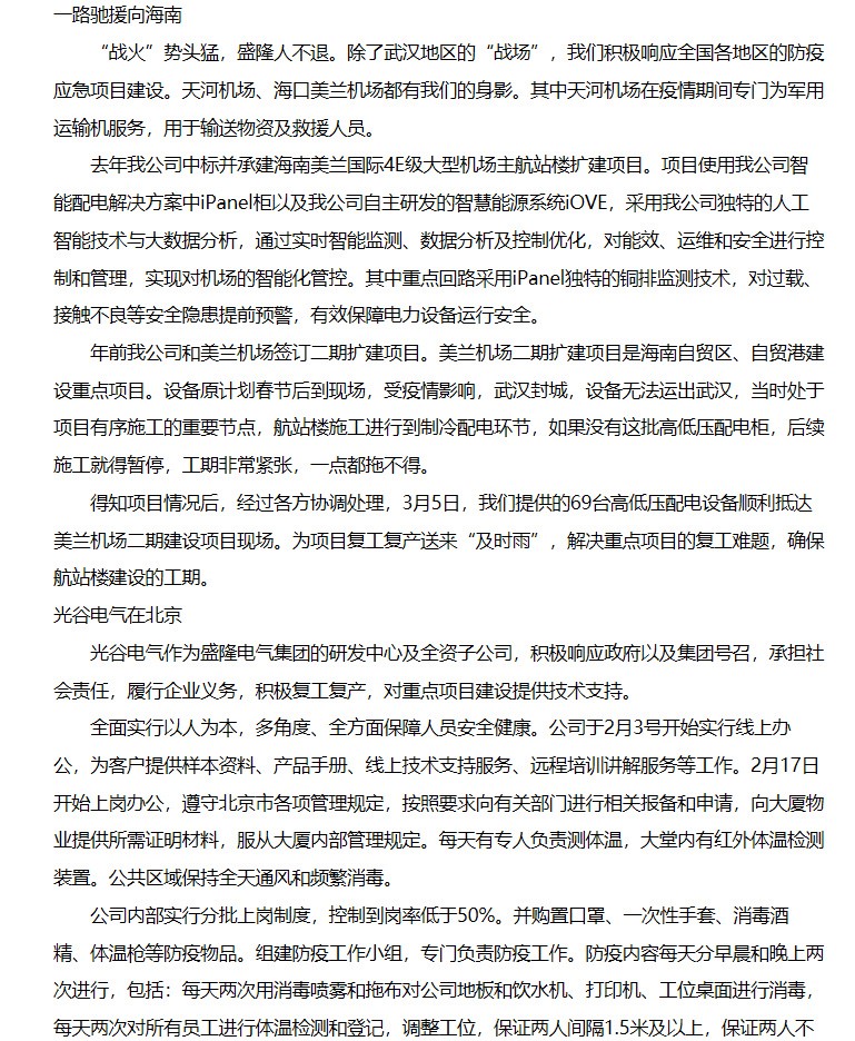 疫情期間,我公司科學合理安排復工復產,最大化恢復生產線,利用企業自身優勢,緊急支援火神山、雷神山等各項國家應急工程建設;并為海南美蘭國際機場項目運送關鍵的配電設備,解決項目復工難題,保證航站樓工期。---文章轉自中國戰略新興產業雜志